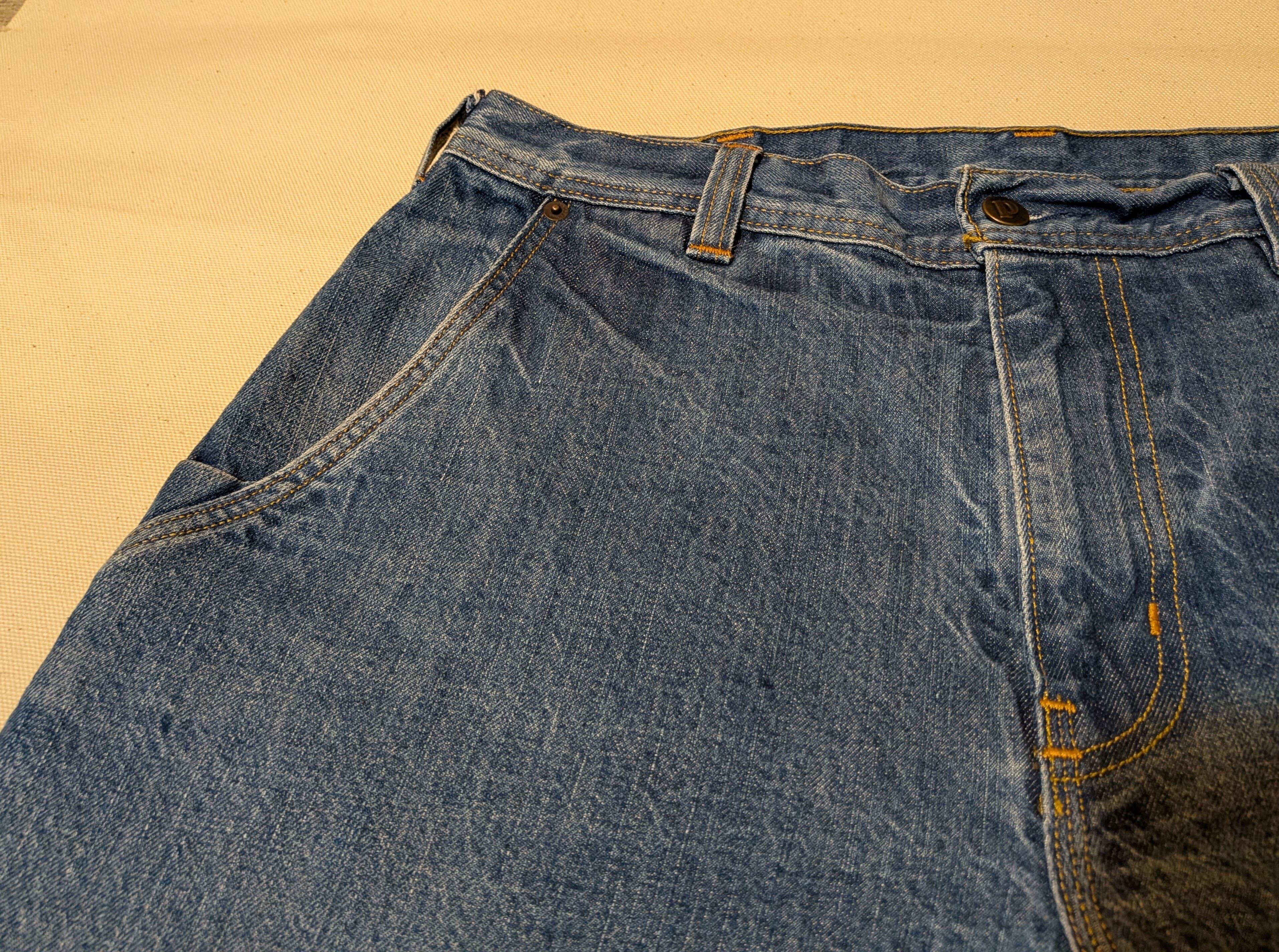 MADE IN USA、Patagoniaタグ付き。ブランド背景と実用性を兼ね備えたデニムパンツ。
