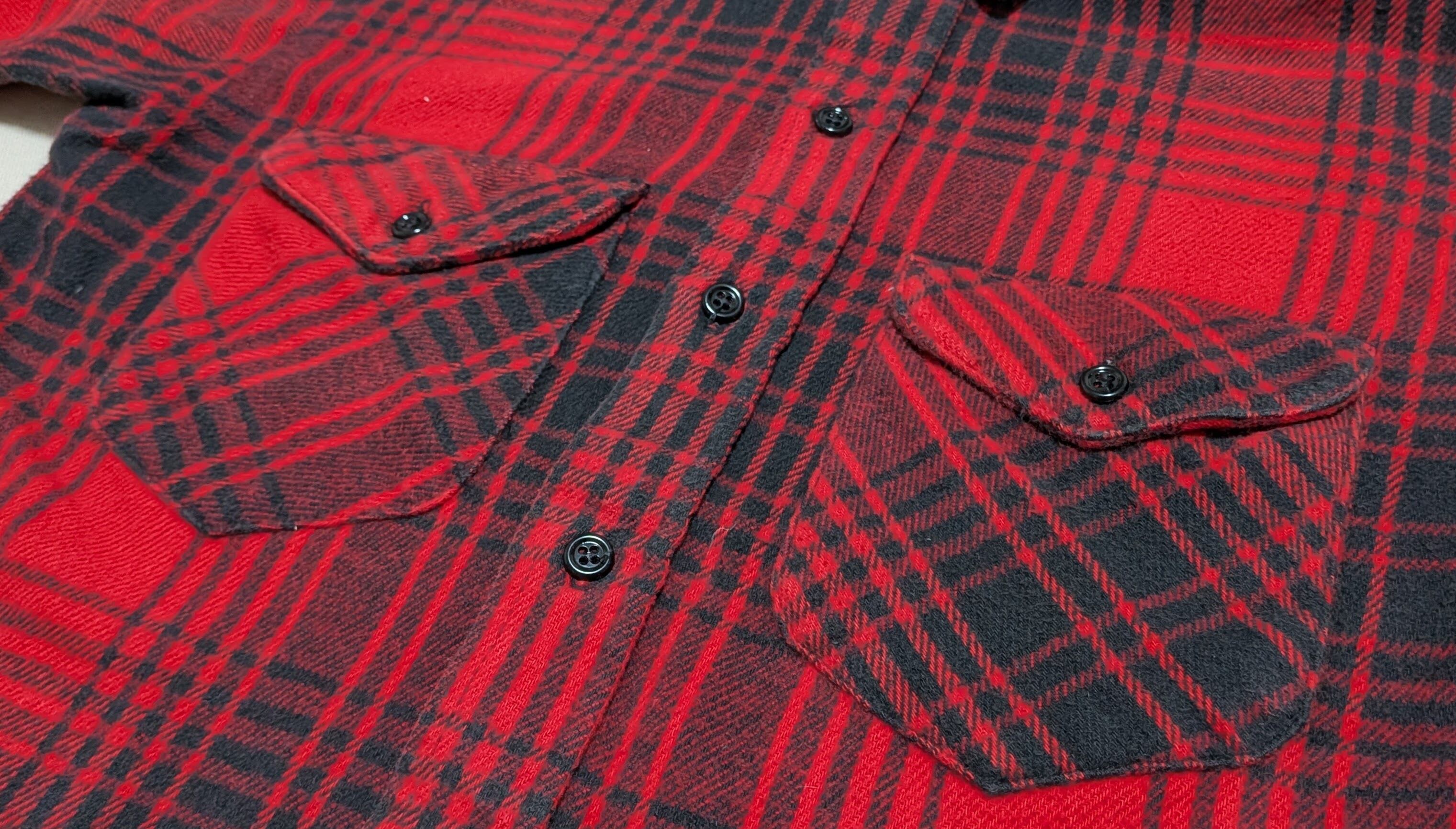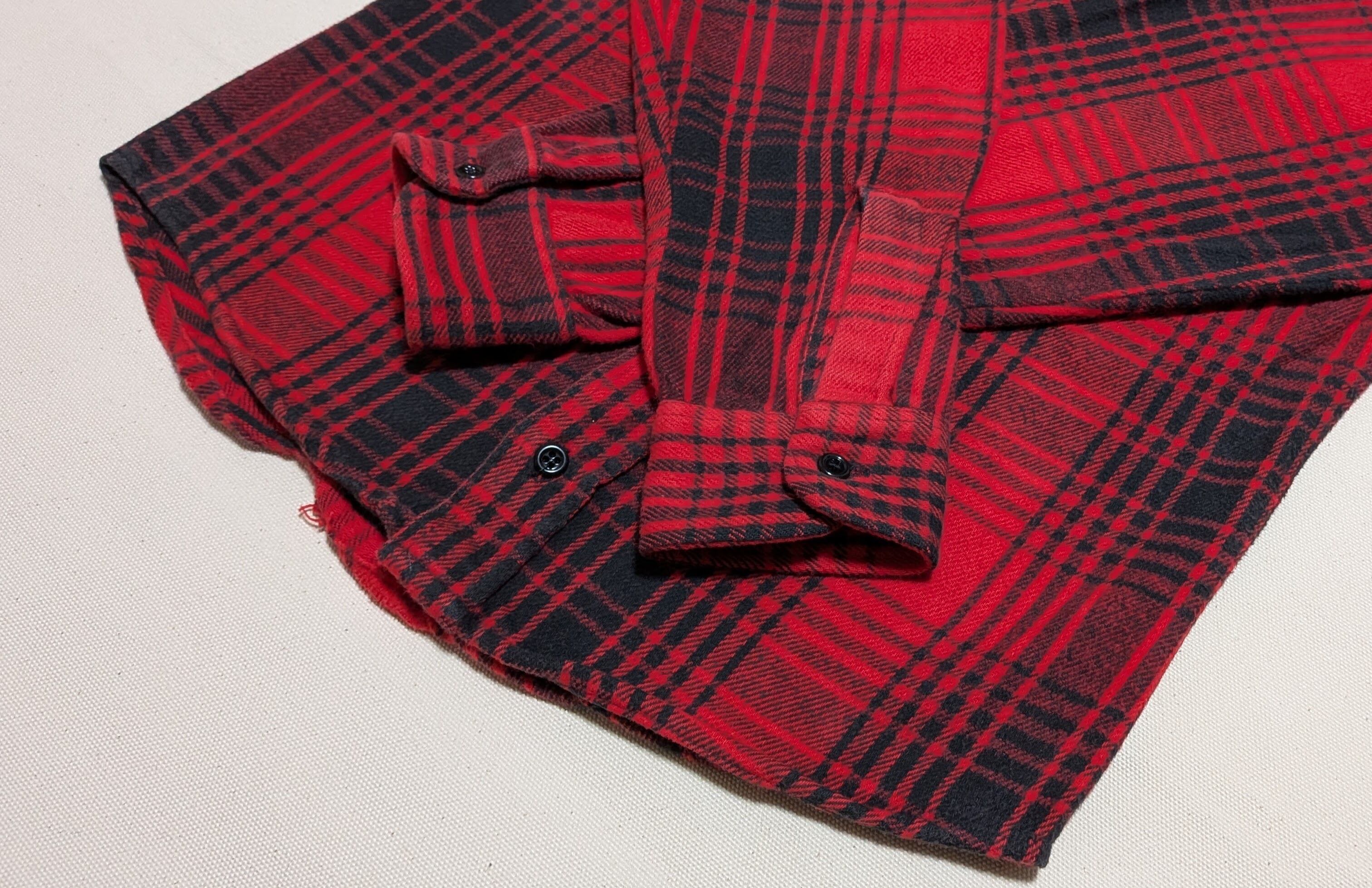 レッド×ブラックのバッファローチェックで、雰囲気抜群の一枚です。
