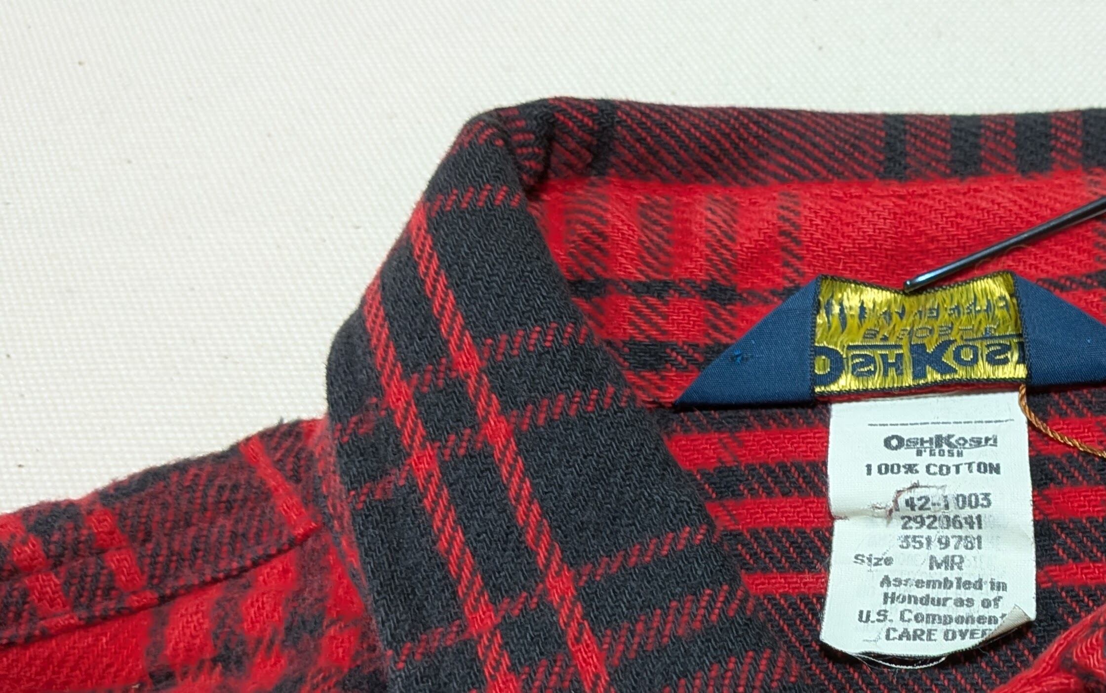 90s OshKosh B’Gosh Red Black Plaid Flannel Shirt