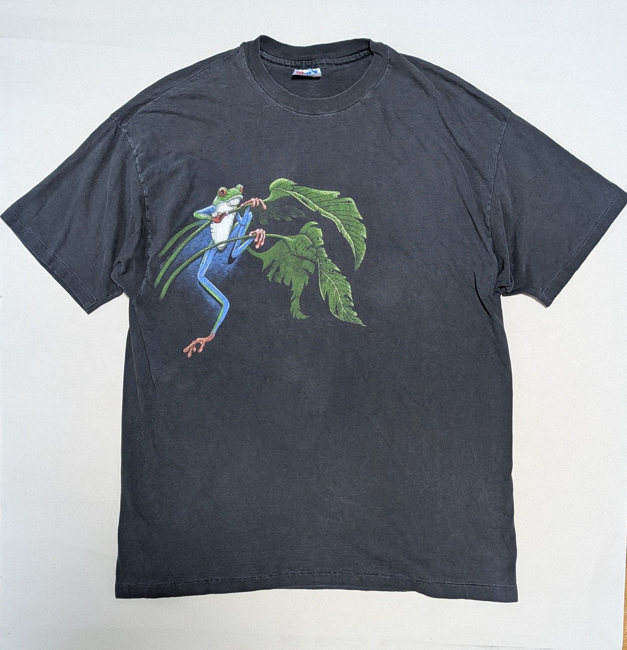90s Vintage Frog Graphic T-Shirt Hanes BEEFY-T Made in USA Fade Black