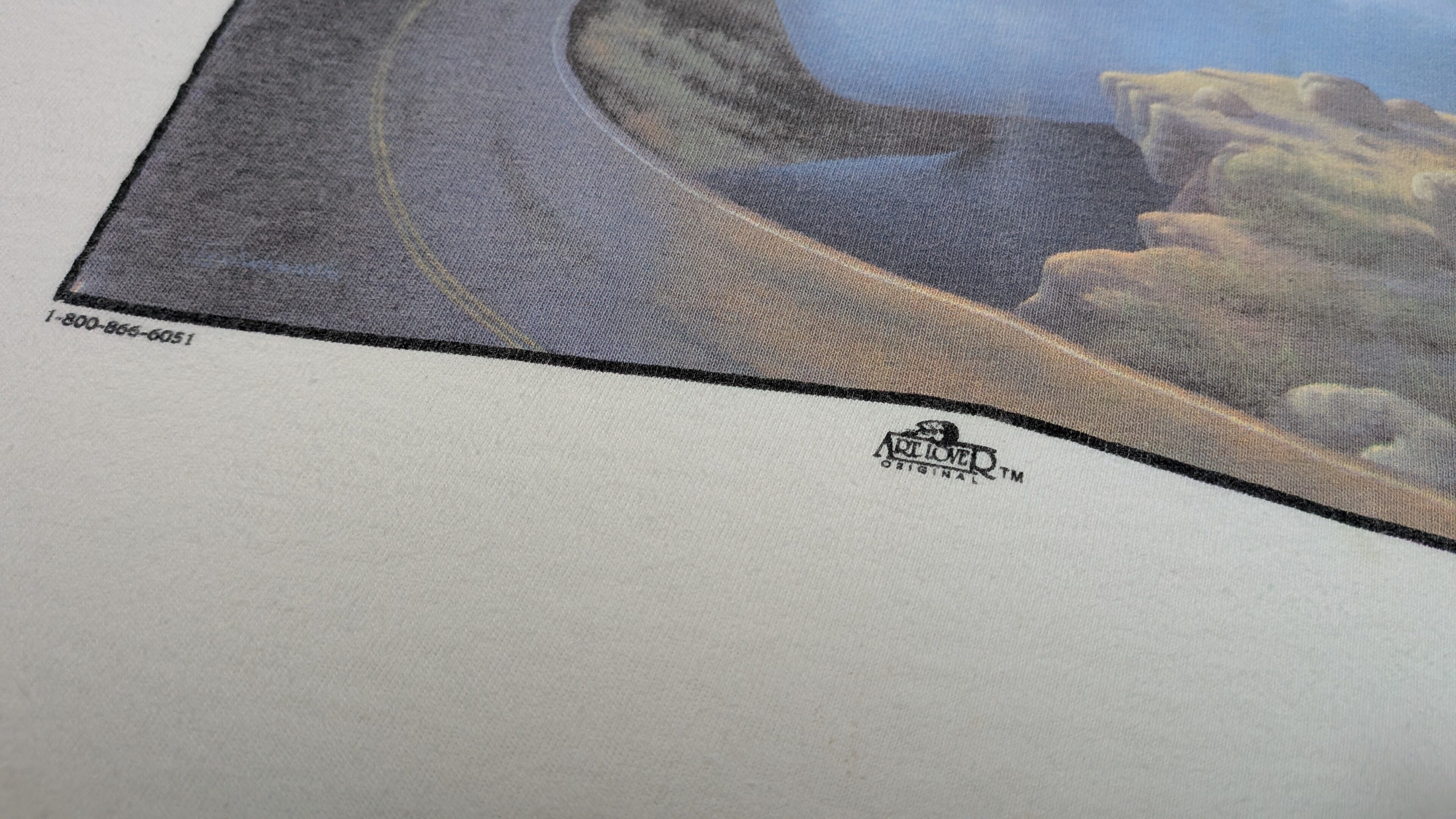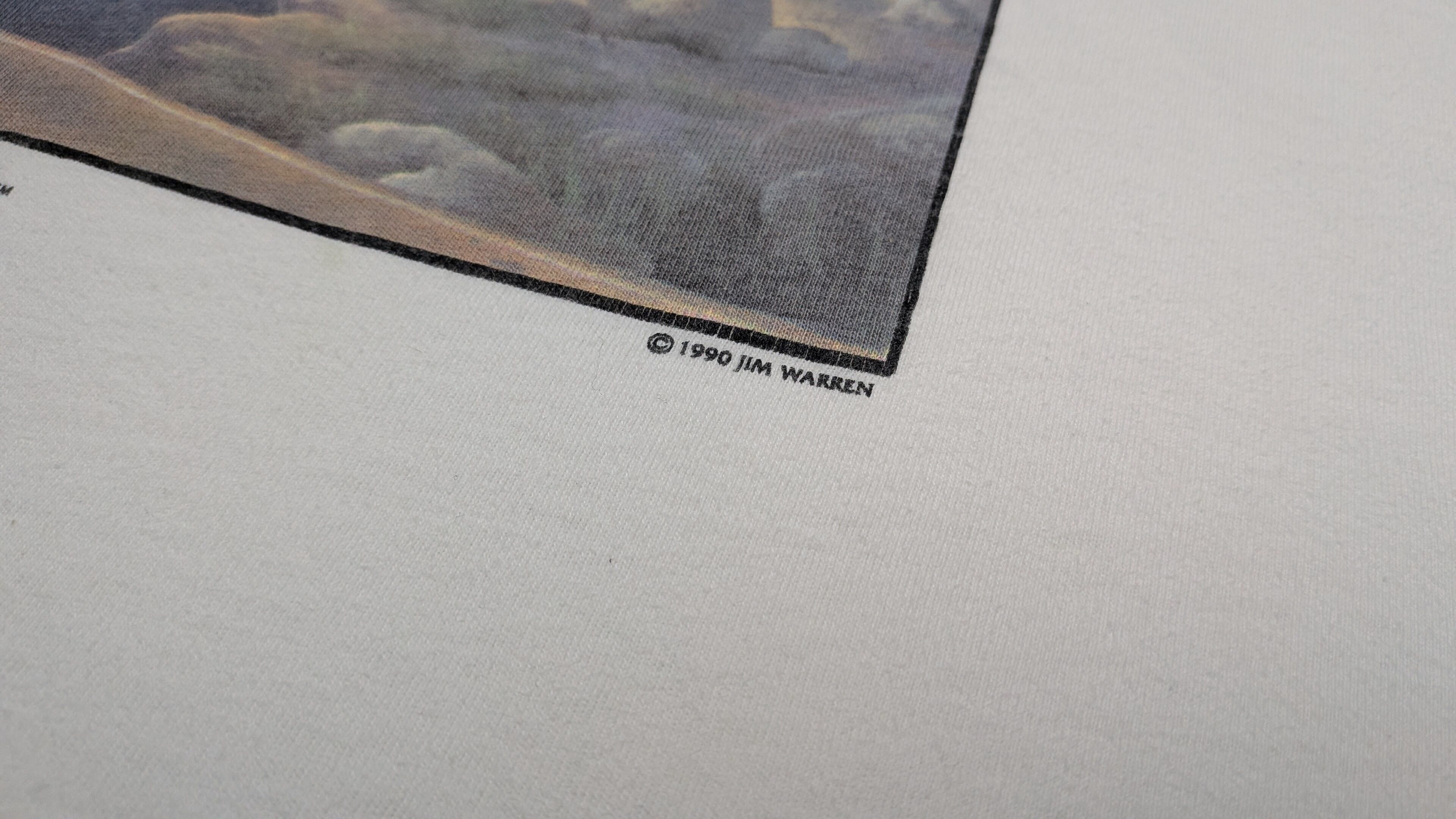 1990年コピーライト入り、アーティストJim Warrenによる“Mother Nature”グラフィックTシャツ。